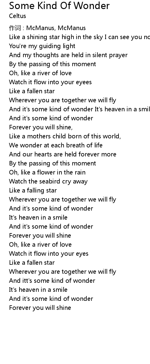| And itt' s some kind of wonder | |
