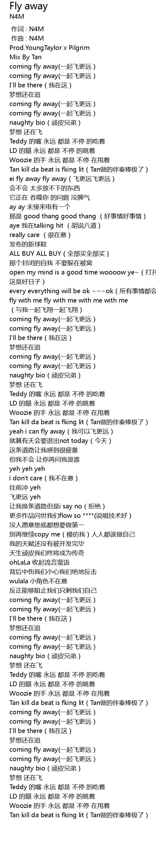 | [00:48.35] | ei fly away fly away fēi gèng yuǎn fēi gèng yuǎn |