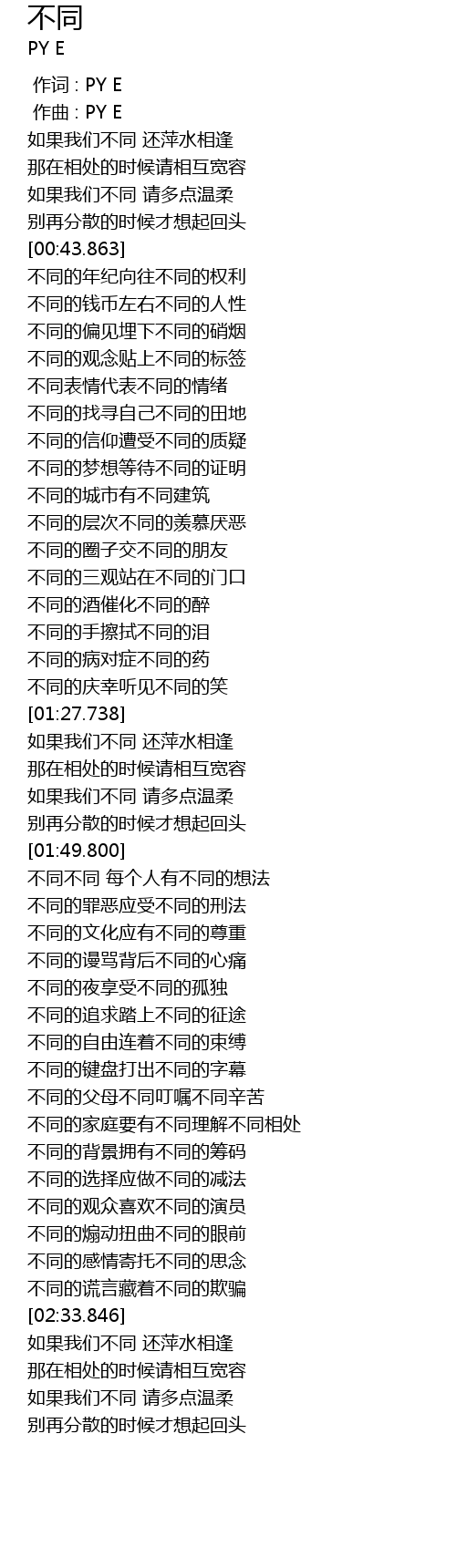 | [00:00.000] | 作词 : PY E |