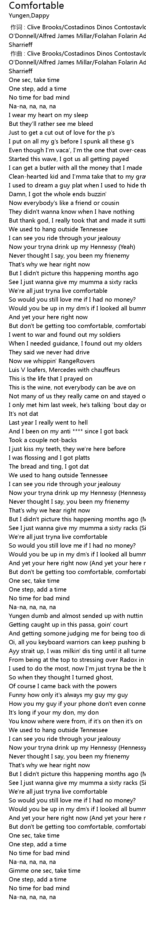 | [02:06.23] | But don' t be getting too comfortable, comfortable |