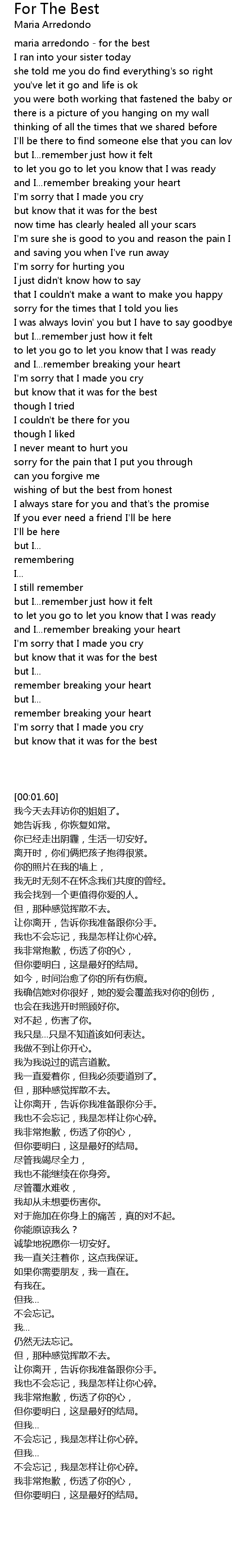 but know that it was for the best |