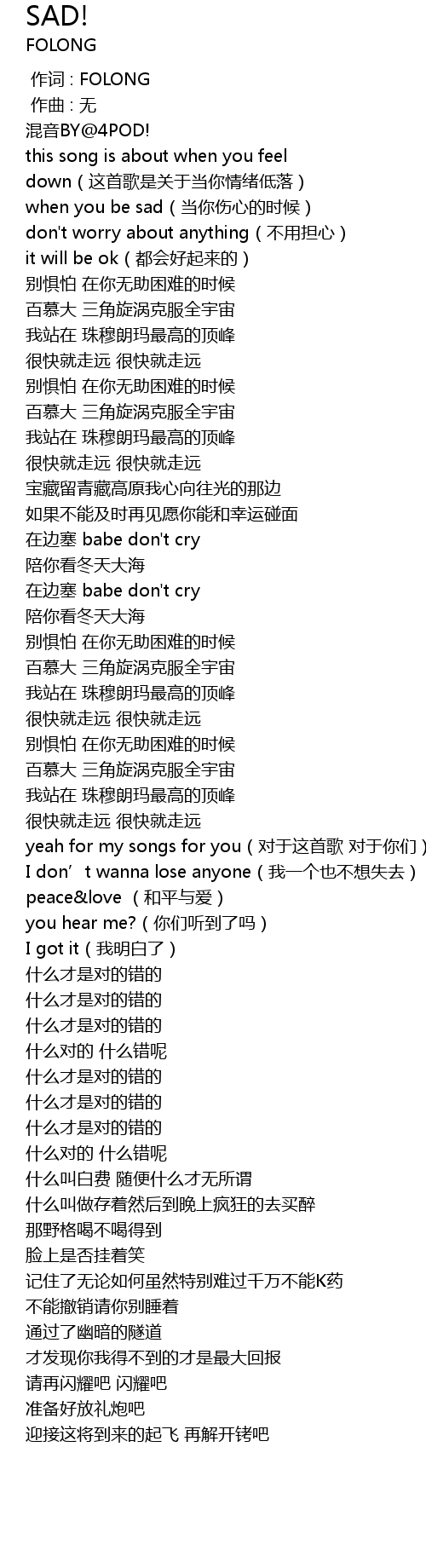 | [00:03.994] | when you be sad(当你伤心的时候) |