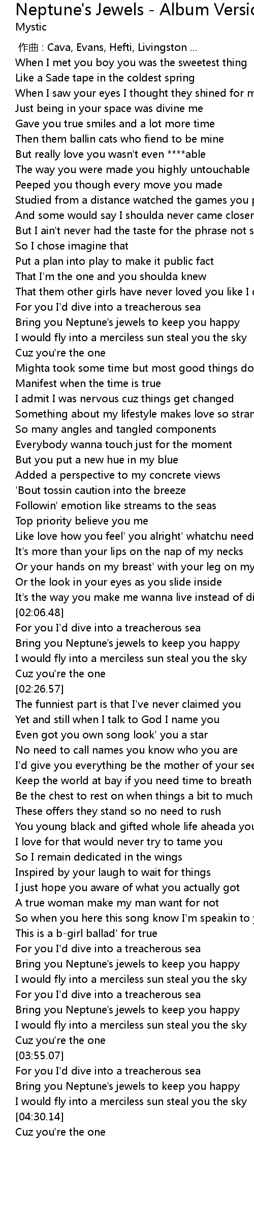 | [04:16.85] | Bring you Neptune's jewels to keep you happy |