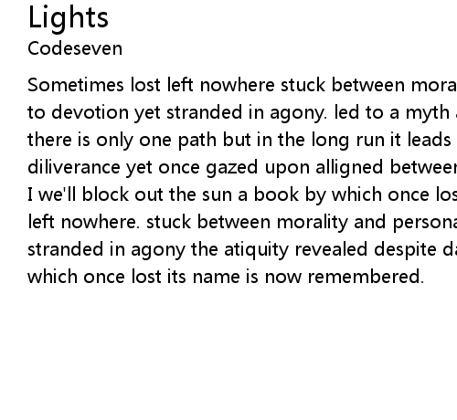 | I we'll block out the sun a book by which once lost it's name sometimes lost left nowhere. stuck between morality and personal gain held true to devotion yet stranded in agony the atiquity revealed despite damage done by time a book by which once lost its name is now remembered. |
