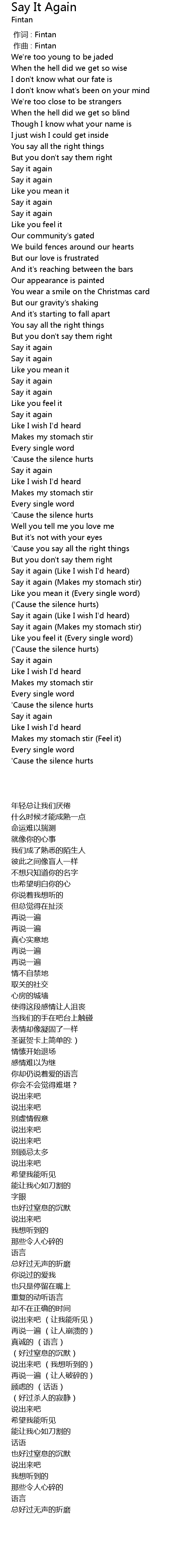 | [02:16.074] | Say it again (Like I wish I'd heard) |