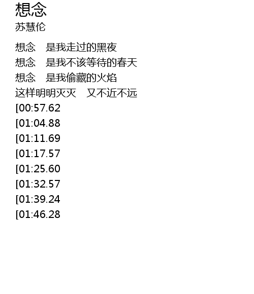 | [03:00.23][01:32.57] | 想念 是你把我锁住的感觉 |