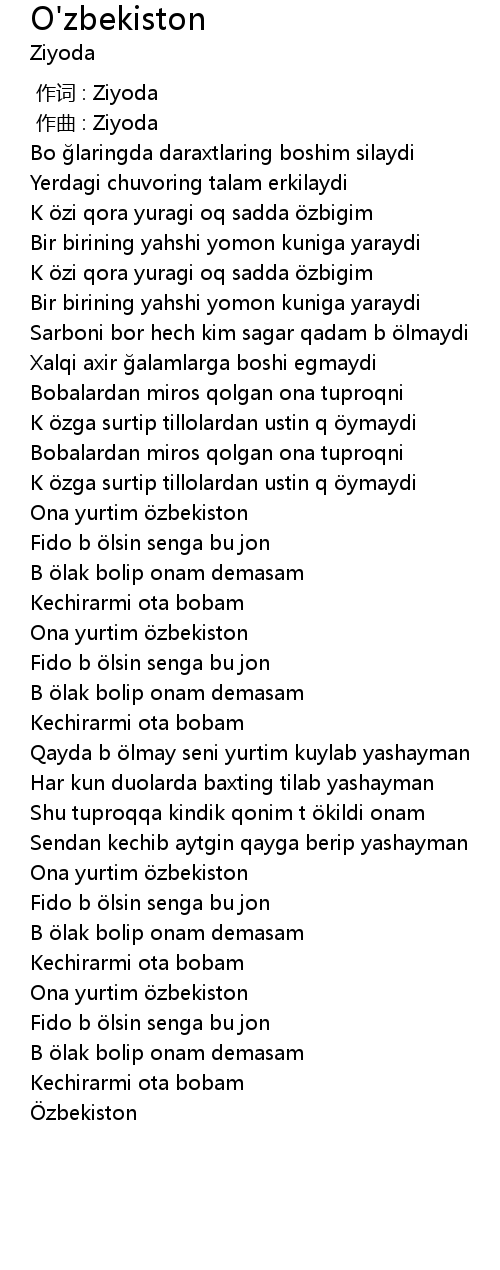 | [02:56.753] | Qayda b lmay seni yurtim kuylab yashayman |
