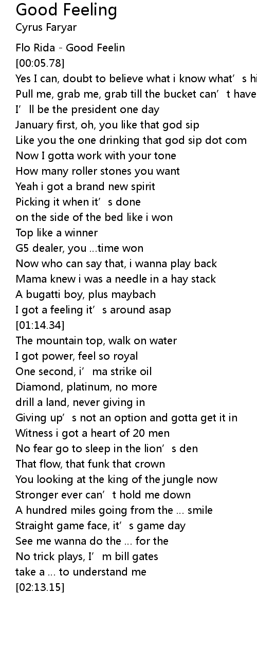 | [00:00.34] | Flo Rida Good Feelin |