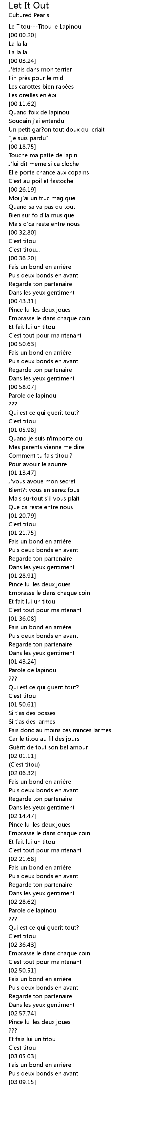 | [00:00.00] | Le TitouTitou le Lapinou |