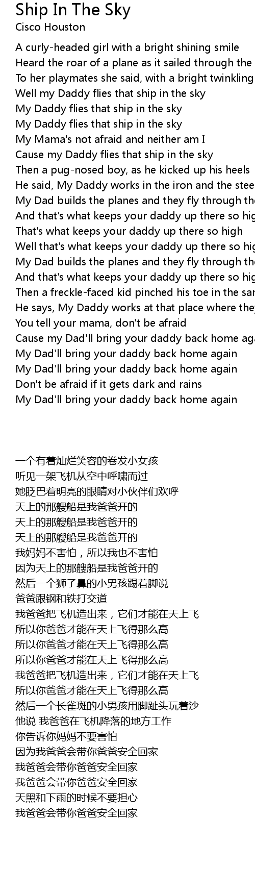 Well my Daddy flies that ship in the sky |