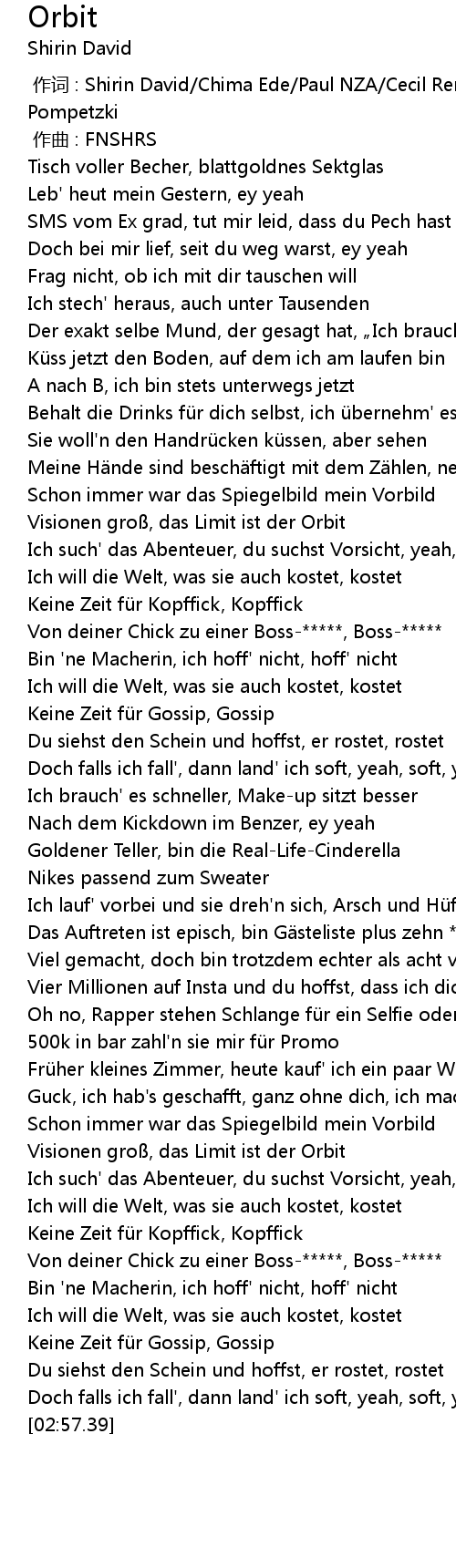 | [00:59.68] | Visionen gro, das Limit ist der Orbit |