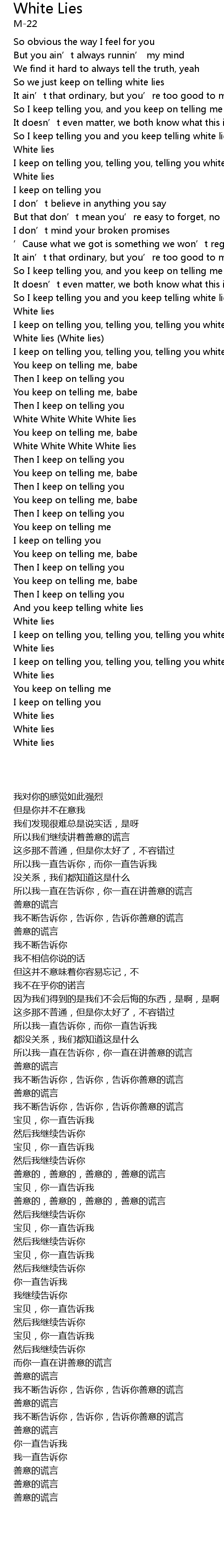 | [02:22.61] | I keep on telling you, telling you, telling you white lies |