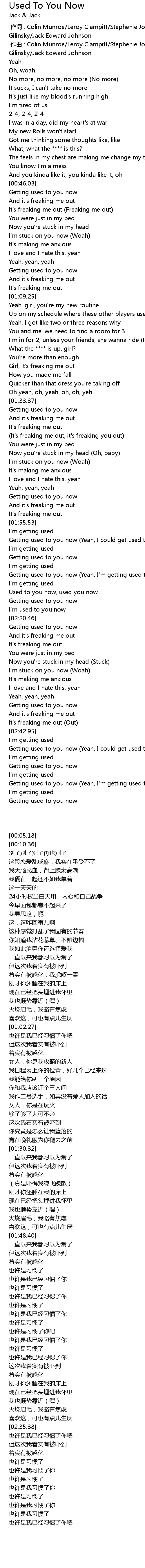| [02:57.07] | Getting used to you now (Yeah, I'm getting used to you now) |