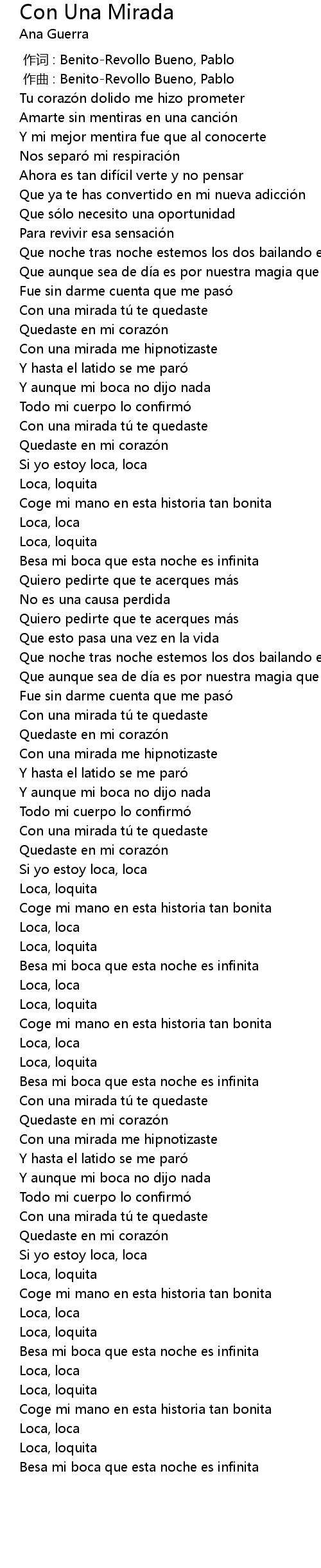 | [00:00.000] | 作词 : Benito-Revollo Bueno, Pablo |