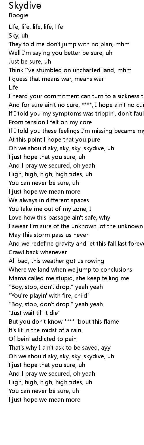 Oh we should sky, sky, sky, skydive, uh |