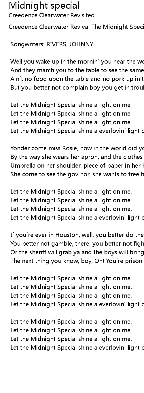 | Creedence Clearwater Revival The Midnight Special Lyrics | |