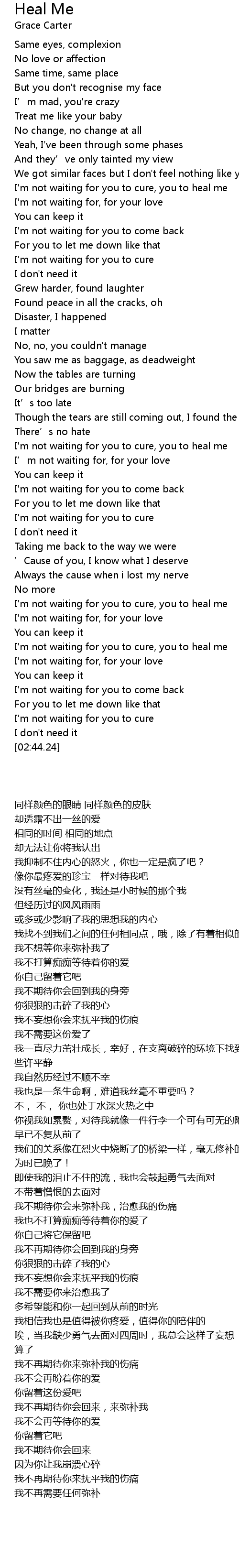 | [02:21.48] | I'm not waiting for you to cure, you to heal me |