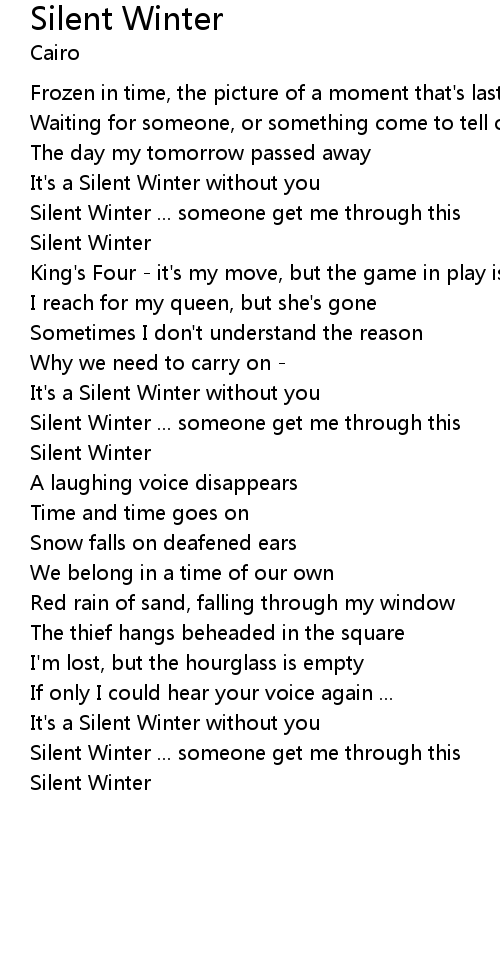 | Silent Winter ... someone get me through this | |