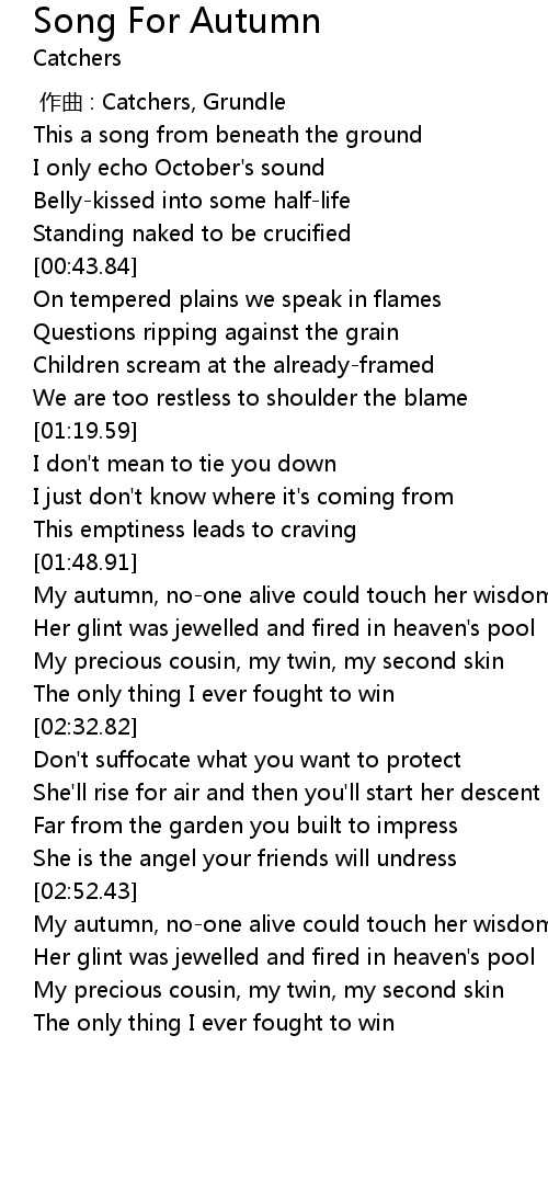 | [02:55.24] | My autumn, no-one alive could touch her wisdom |