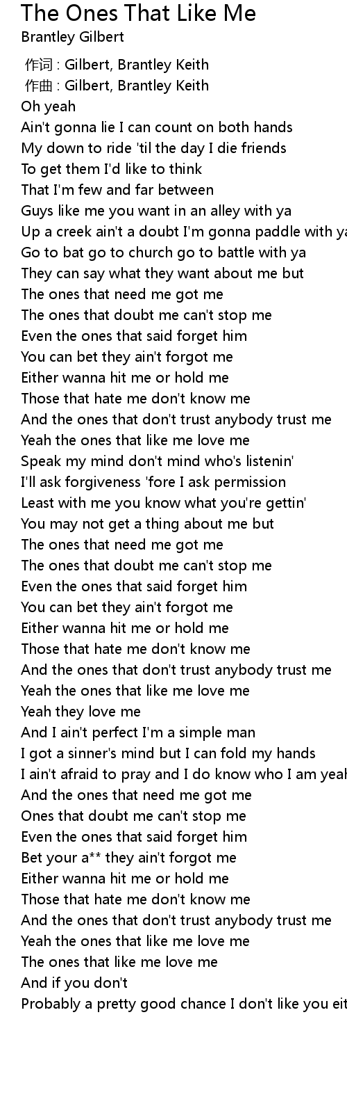 | [00:00.000] | 作词 : Gilbert, Brantley Keith |