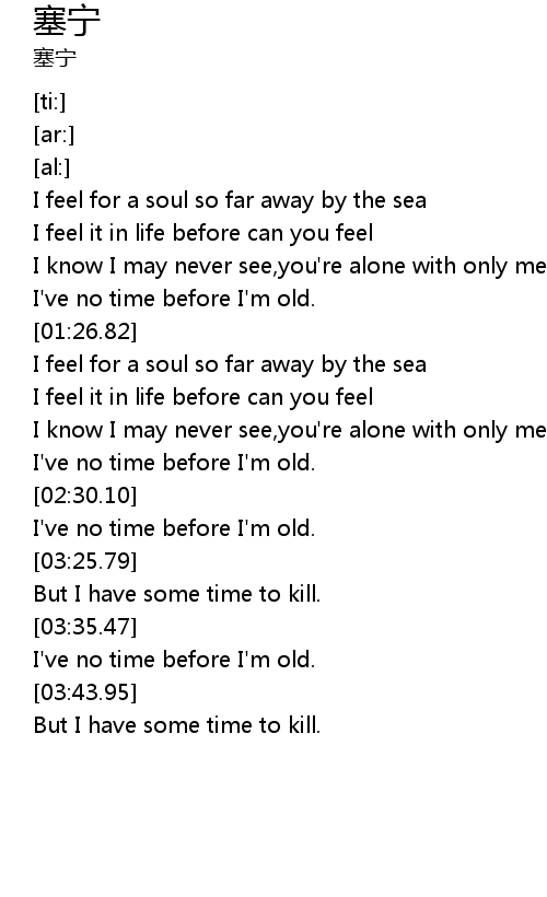 | [00:56.77] | I feel for a soul so far away by the sea |