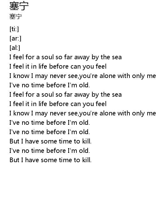 | [02:08.59] | I feel for a soul so far away by the sea |