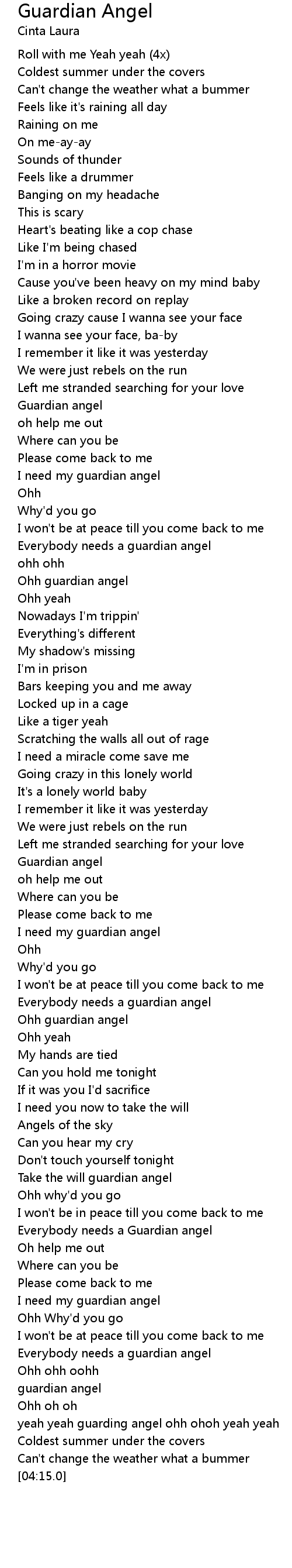 | [03:28.340] | I need my guardian angel |
