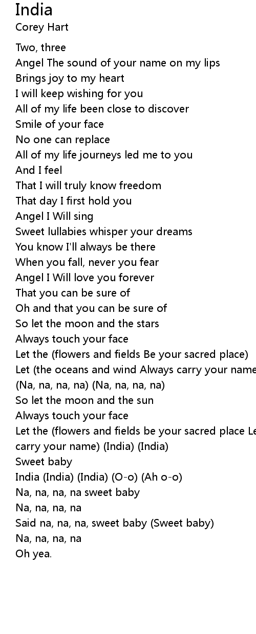 Let (the oceans and wind Always carry your name) (India) (India, o-o) (Ah-h) (Na, na, na, na) (Na, na, na, na) |