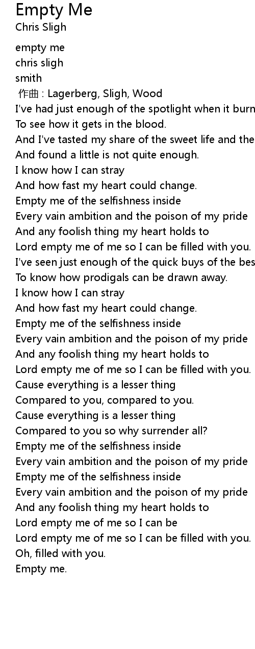 | [03:38.97] | Lord empty me of me so I can be filled with you. |