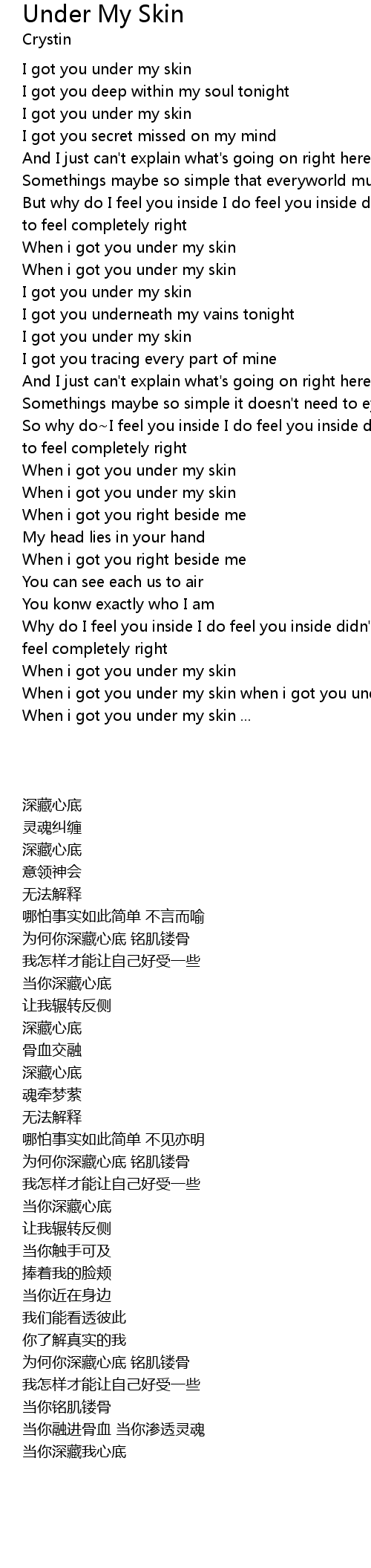 | [04:18.35] | When i got you under my skin when i got you under my skin . |