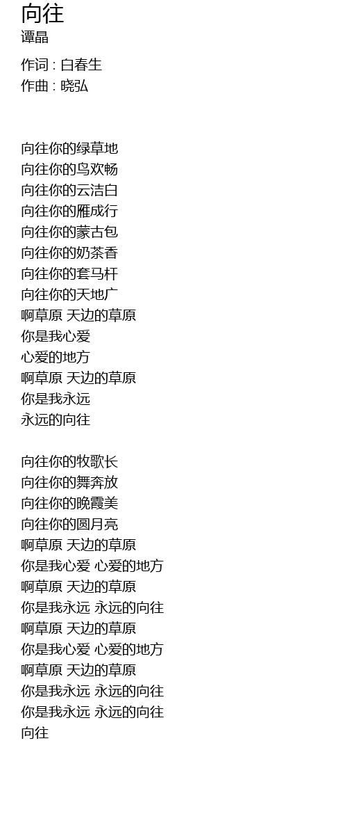| xiàng wǎng nǐ de lǜ cǎo dì | |
