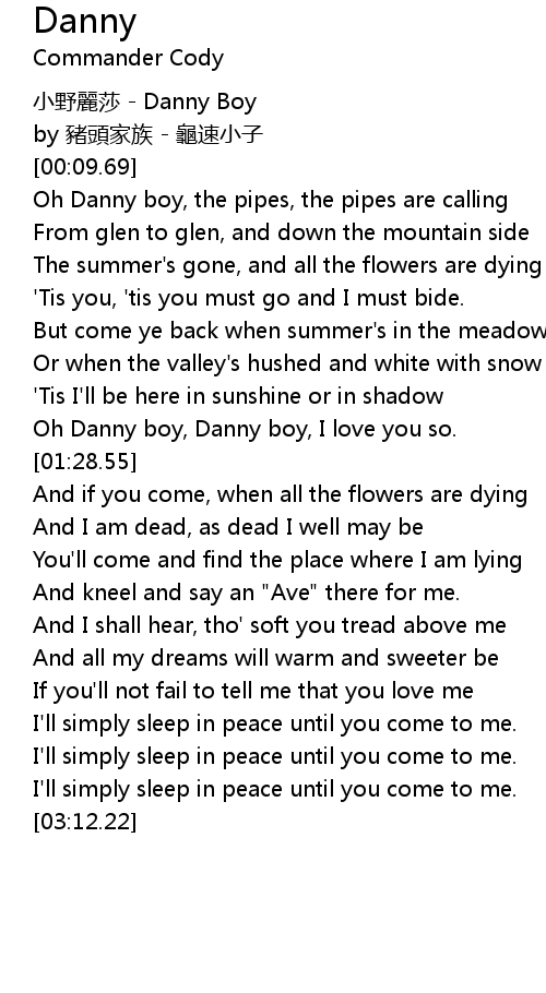 | [01:20.64] | Oh Danny boy, Danny boy, I love you so. |