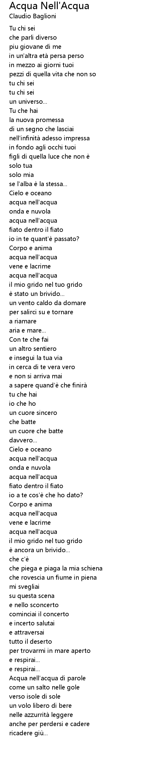 | Song | Acqua Nell'Acqua |
