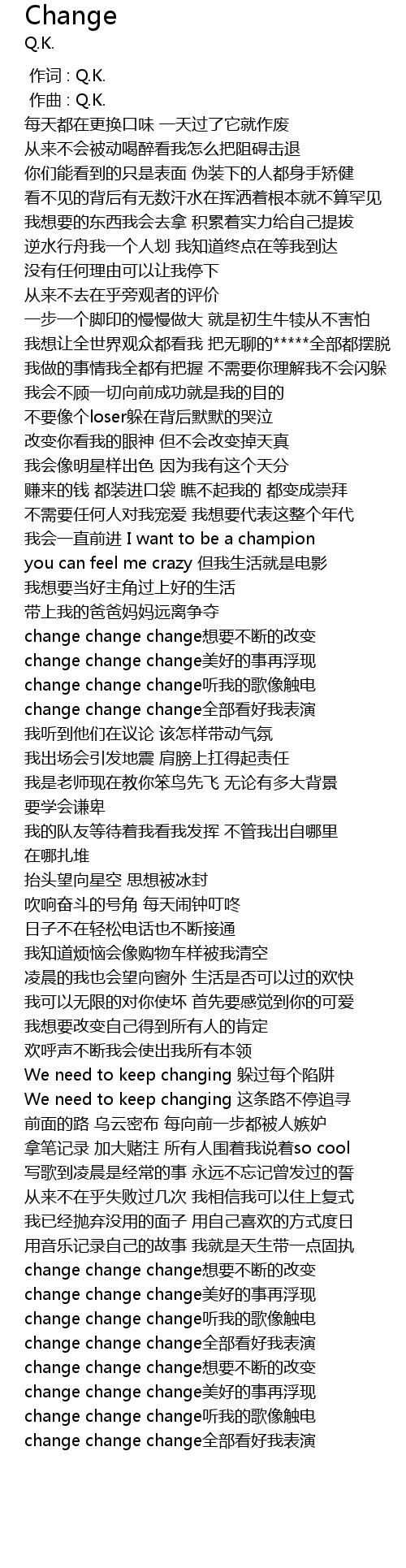 | [02:36.189] | change change change想要不断的改变 |