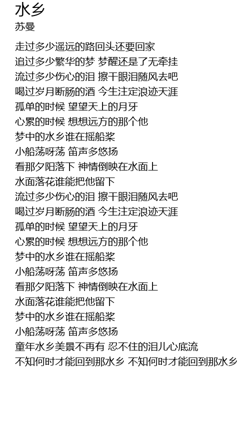 | [04:21.11] | 不知何时才能回到那水乡 不知何时才能回到那水乡 |