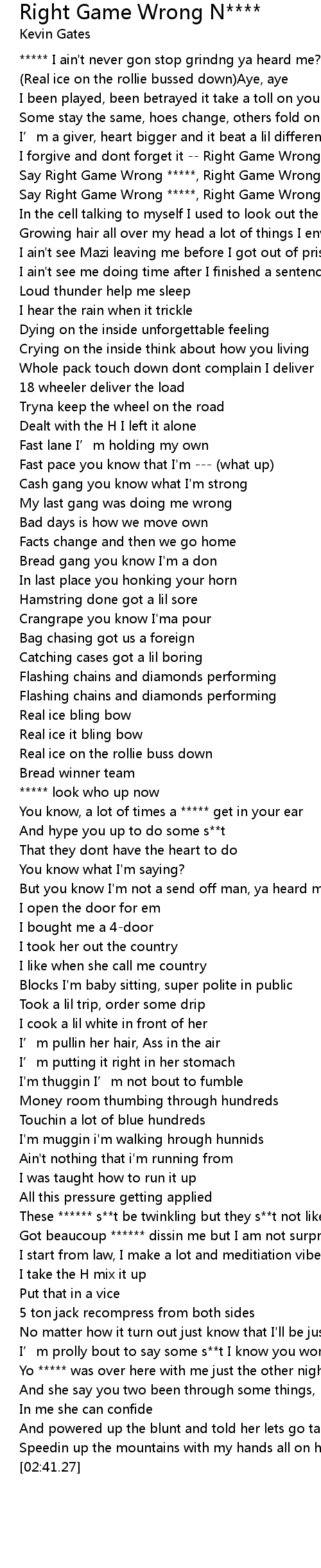 | [00:22.29] | Say Right Game Wrong *****, Right Game Wrong ***** |