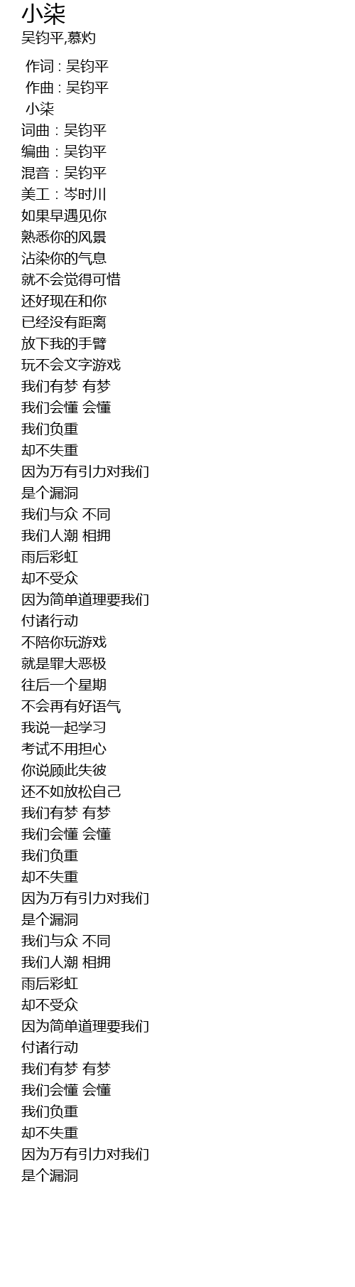 | [00:00.000] | 作词 : 吴钧平 |