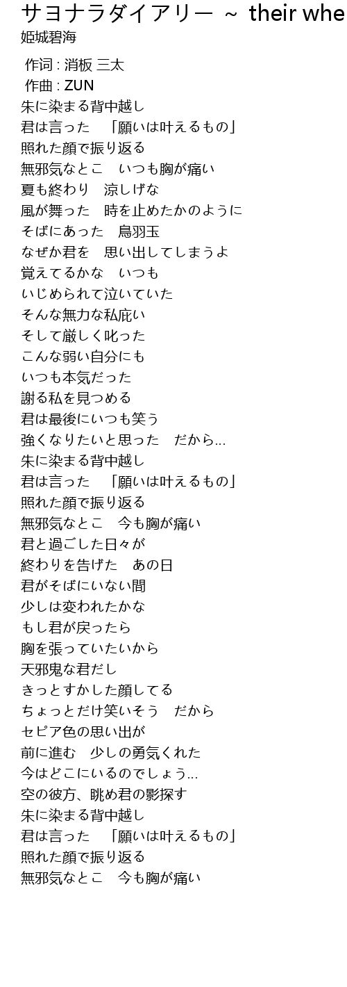| Song | サヨナラダイアリー ~ their whereabouts |