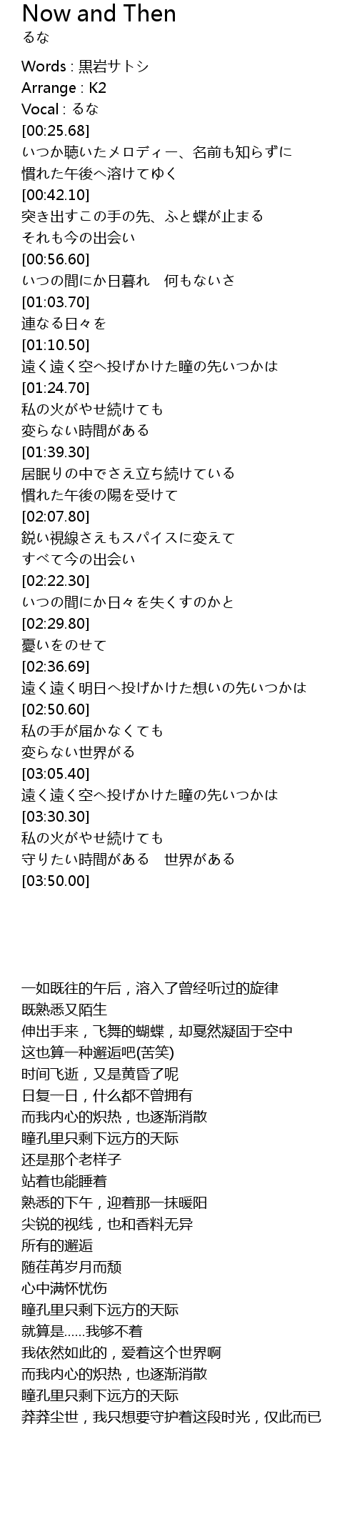 | [00:29.10] | いつか聴いたメロディー、名前も知らずに |