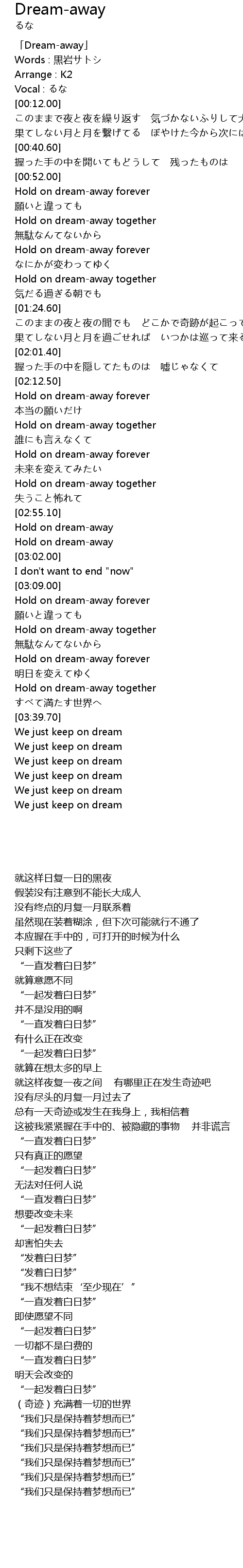 | [03:22.70] | Hold on dream-away forever |