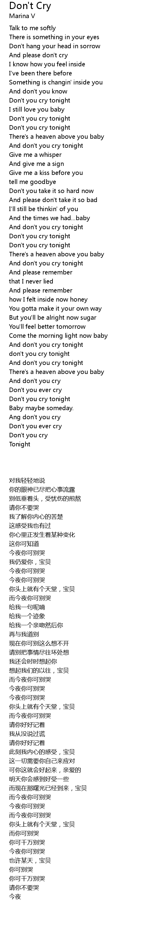 | [00:48.87] | Don't you cry tonight |