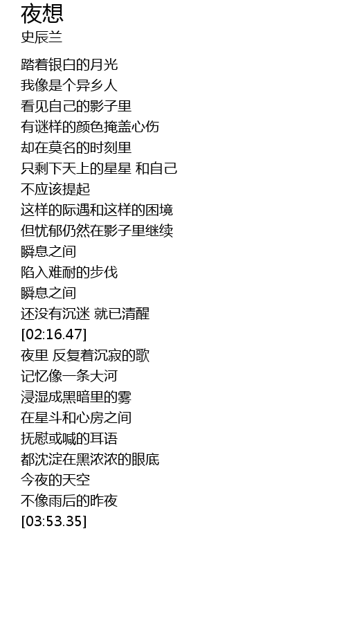 | [02:46.41] | 夜里 反复着沉寂的歌 |