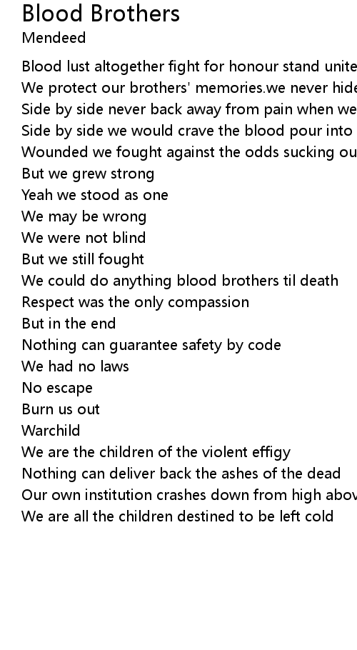 We could do anything blood brothers til death |