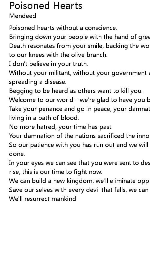 Poisoned hearts without a conscience. |