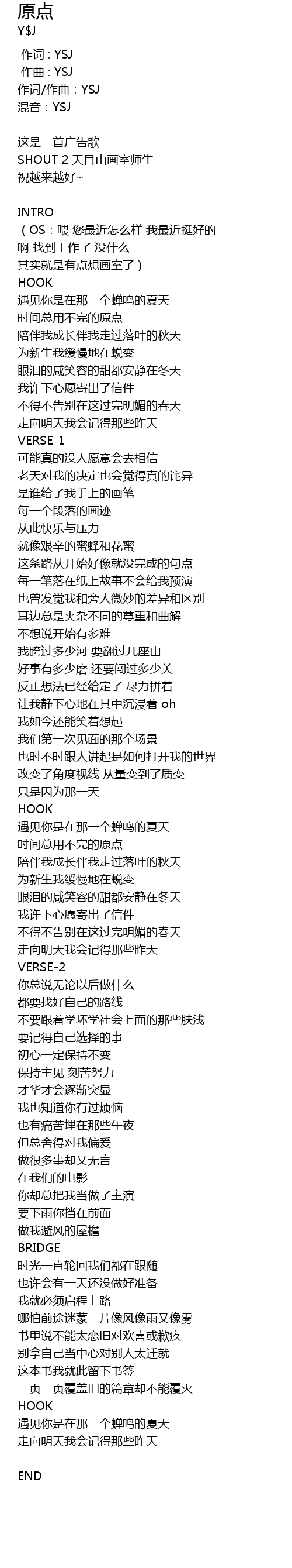 | [00:00.000] | 作词 : YSJ |