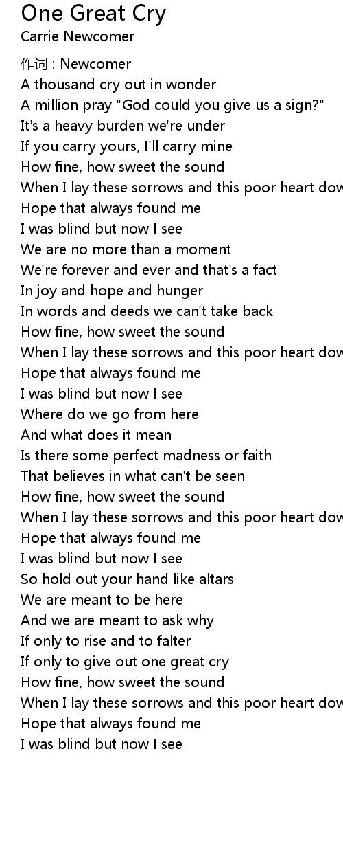 | Song | One Great Cry |