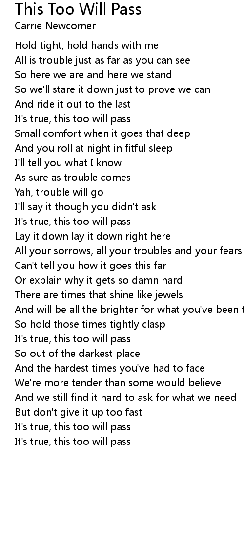 It's true, this too will pass |