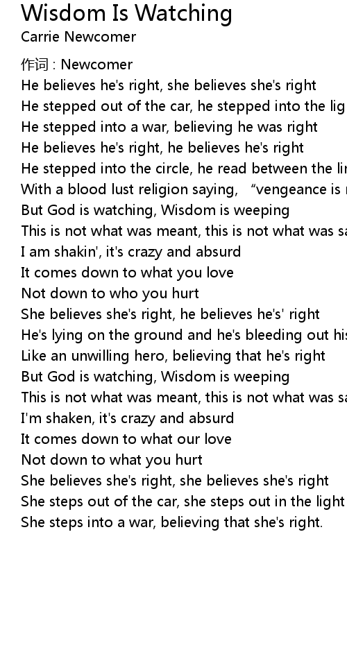| Song | Wisdom Is Watching |