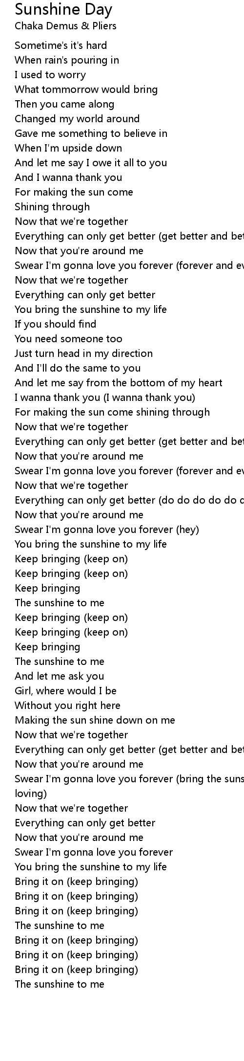 Swear I'm gonna love you forever (bring the sunshine, bring the loving) |