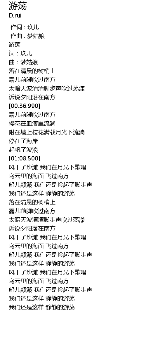 | [01:35.588] | 我们还是这样 静静的游荡 |